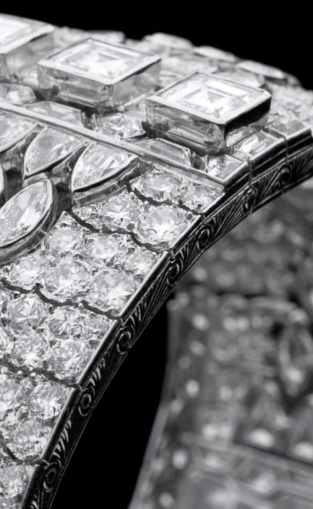 Egyptian Pattern bracelet, 1924 Platinum, emeralds, rubies, sapphires, onyx, and diamonds, 200 × 25 × 3 mm.